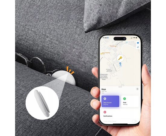 Precyzyjne lokalizowanie: Znajdź swój przedmiot na mapie w aplikacji Znajdź mój, a także skorzystaj z funkcji precyzyjnego wyszukiwania (Precision Finding), która za pomocą technologii Ultra Wideband (UWB) i wizualnych wskazówek naprowadzi Cię bezpośrednio do zguby, jeśli posiadasz kompatybilny iPhone (modele od 11 wzwyż).