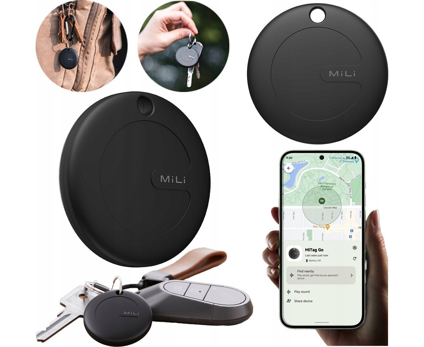 Lokalizator MiLi MiTag AND Czarny z Czarnym Etui (1 szt.) – spokój ducha z Google Find My Device