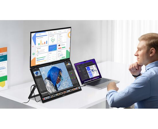 Przekształć swojego laptopa w mobilne, trzyskokowe stanowisko pracy z ultracienkim podwójnym monitorem przenośnym ZEUSLAP Z18W. Ten innowacyjny system to zestaw dwóch dodatkowych 18,5-calowych ekranów, które łatwo mocuje się do laptopa, natychmiastowo zwiększając Twoją przestrzeń roboczą o 200%. Jest to idealne narzędzie dla programistów, analityków, twórców treści i każdego, kto potrzebuje maksymalnej produktywności i dużej przestrzeni ekranowej w podróży.